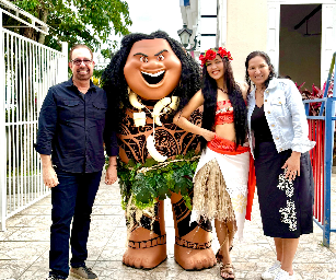 🌺 foram surpreendidos pela visita encantadora de Moana e Maui — símbolos de coragem, inclusão e parceria,